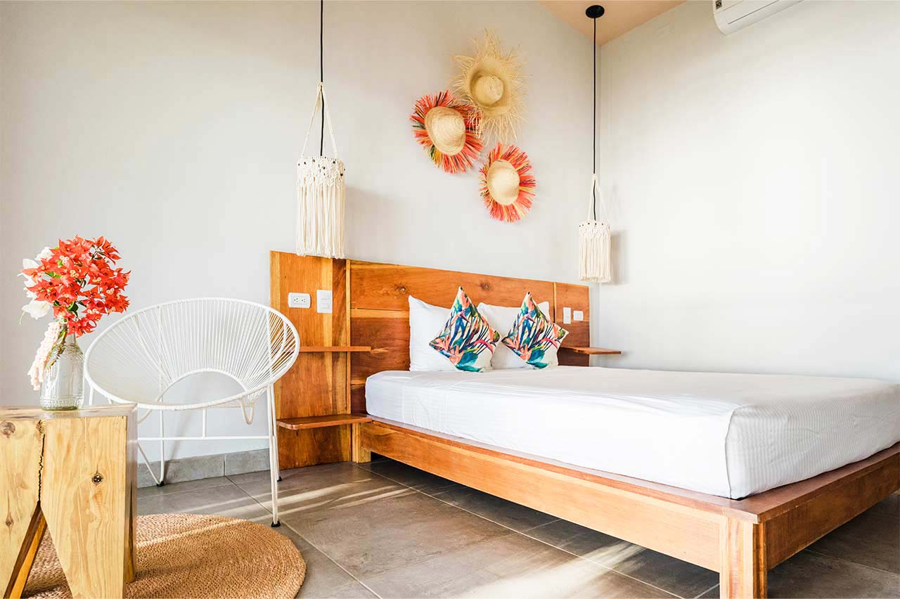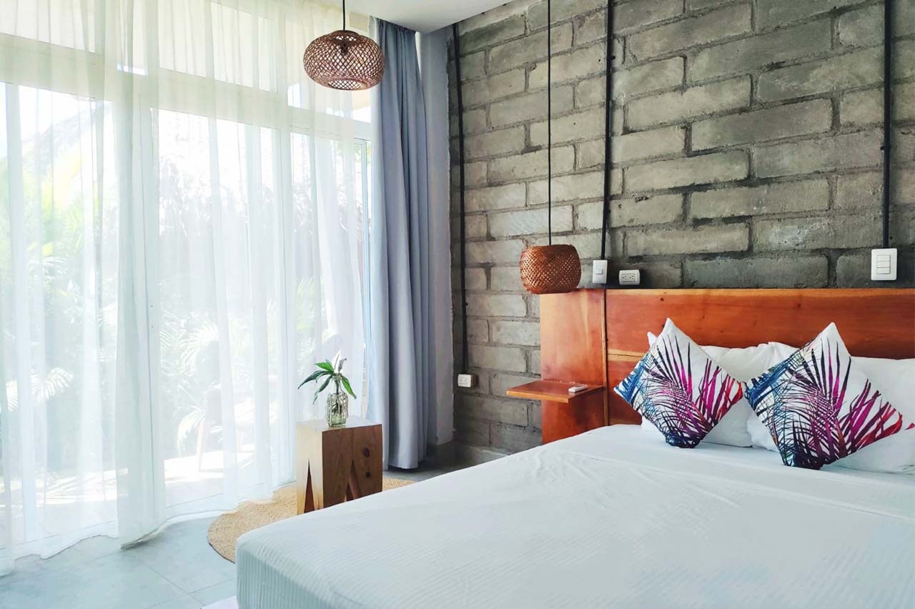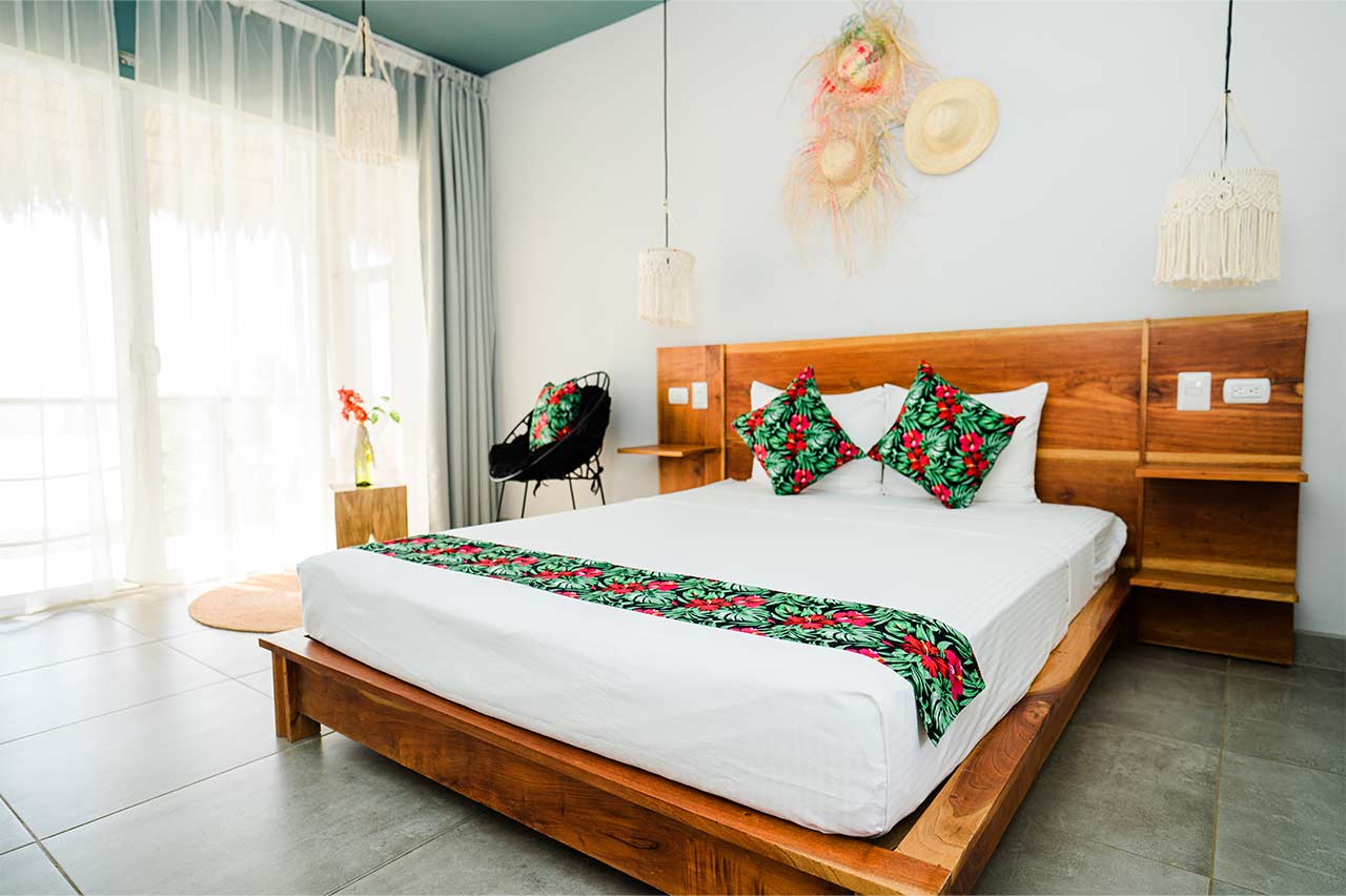 Alive Beach House hotel’s Superior Queen room features a private balcony overlooking the Pacific Ocean. At 27 square meters, the room sleeps two guests.