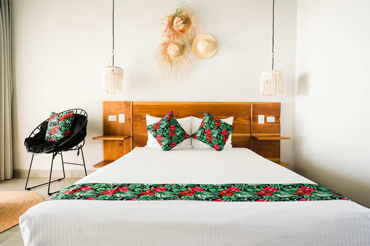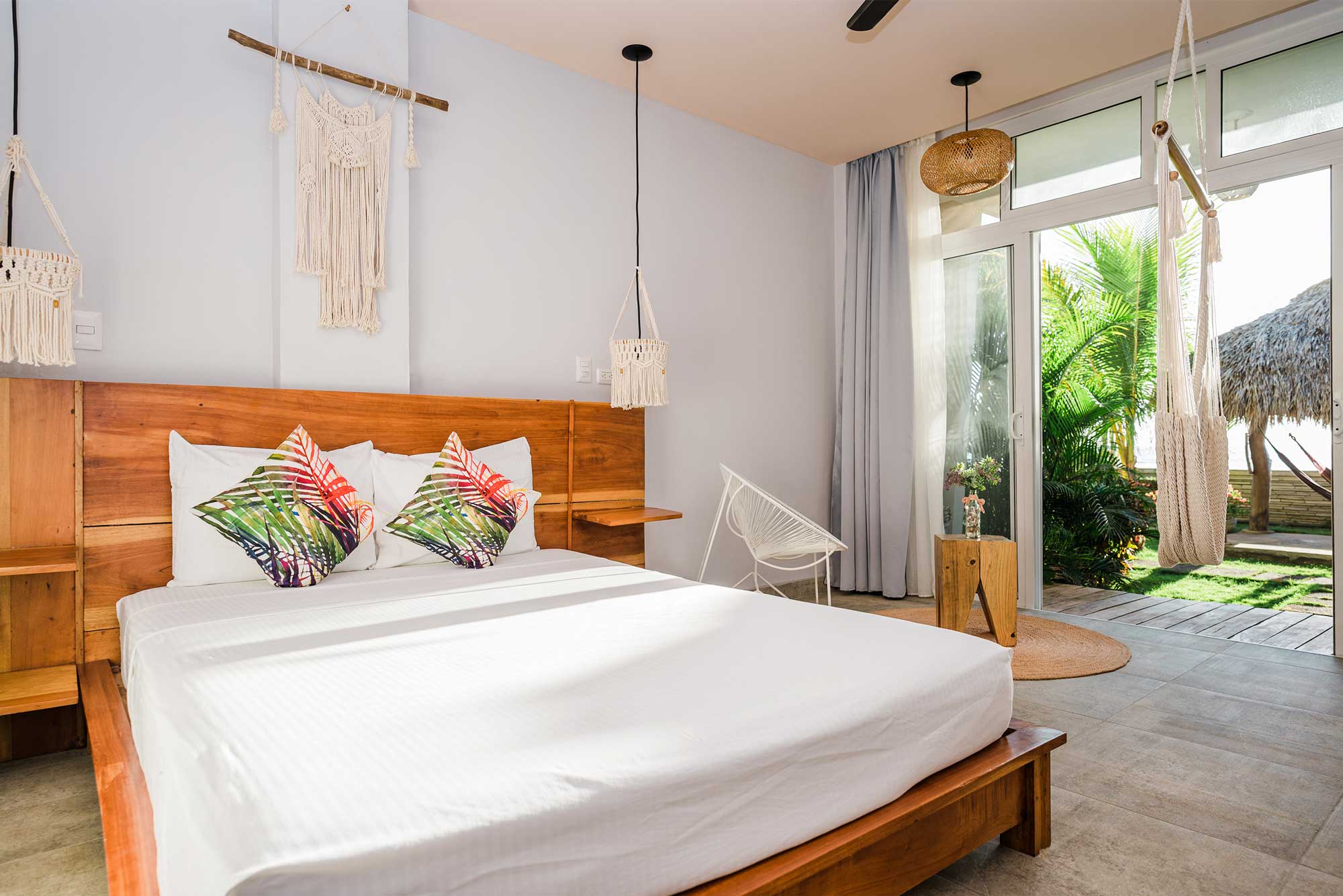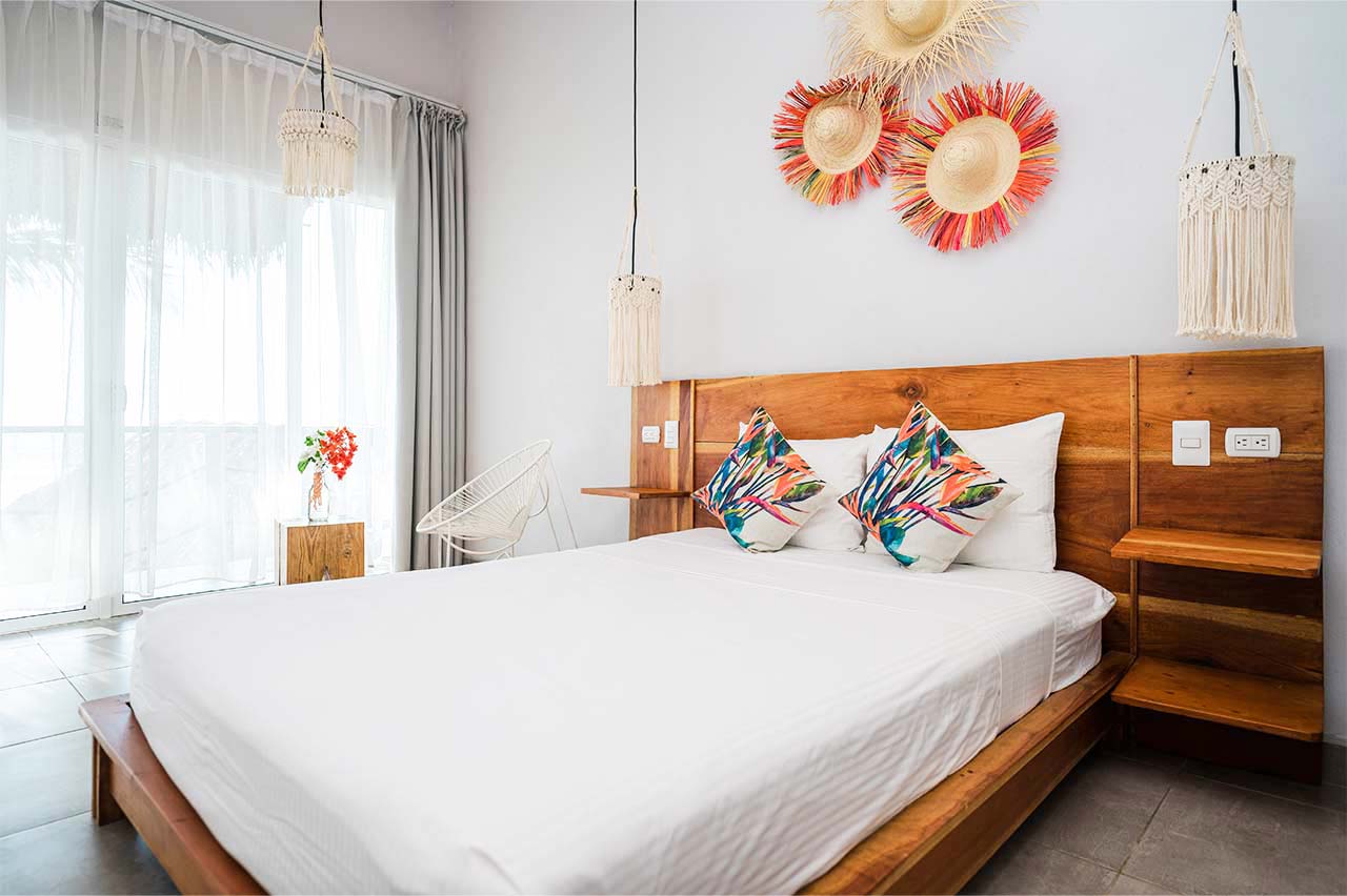 Alive Beach House hotel’s Superior Queen room features a private balcony overlooking the Pacific Ocean. At 27 square meters, the room sleeps two guests.