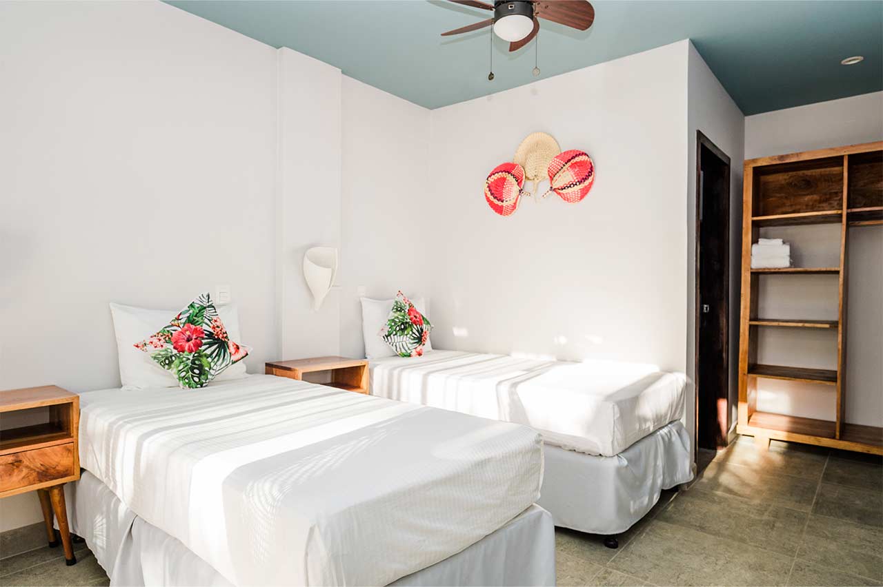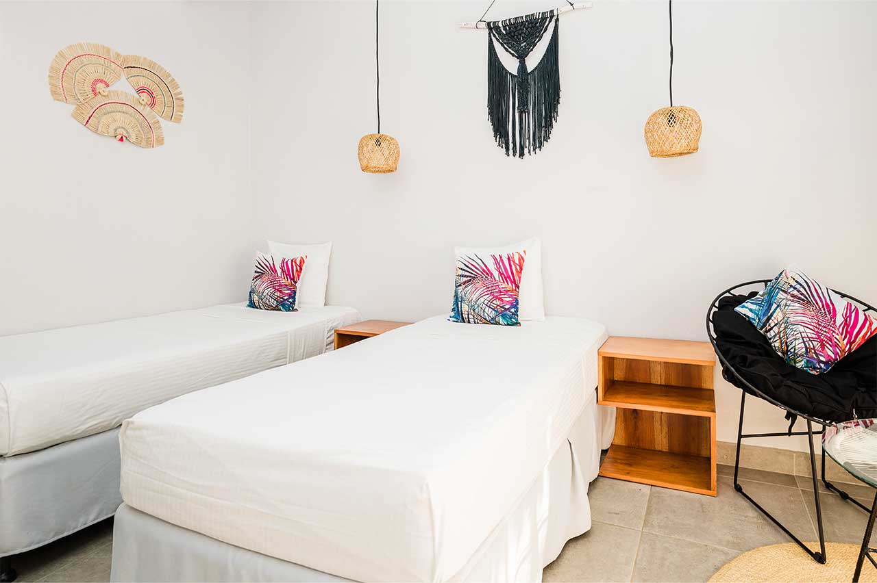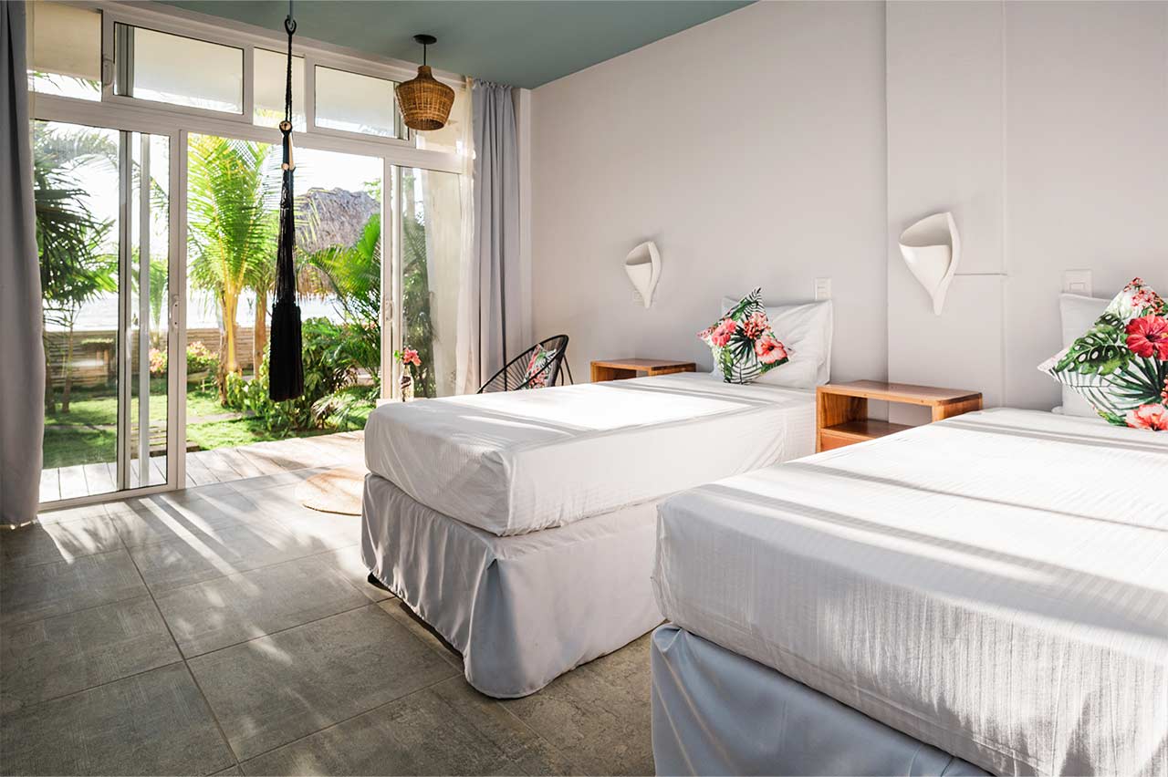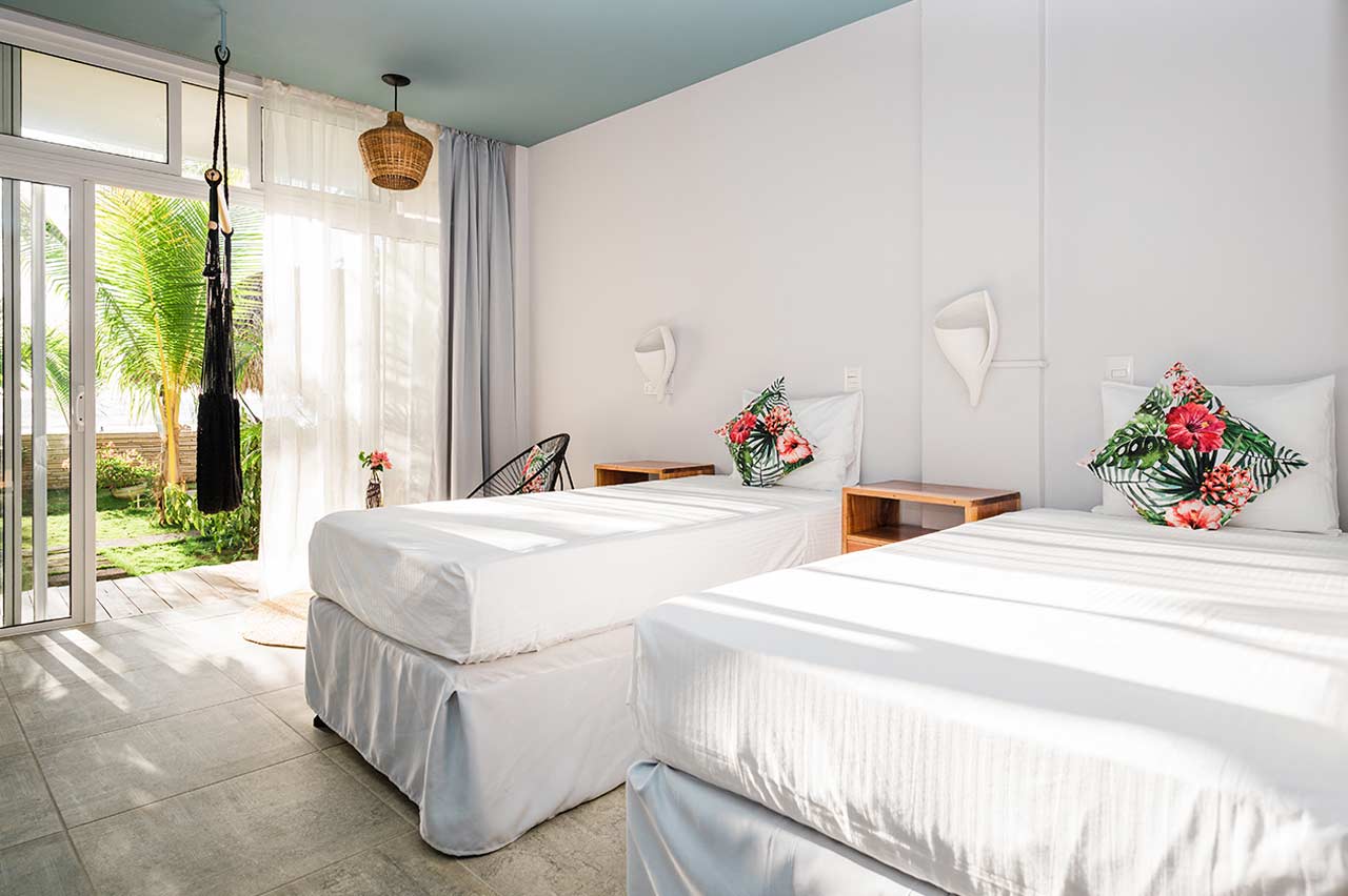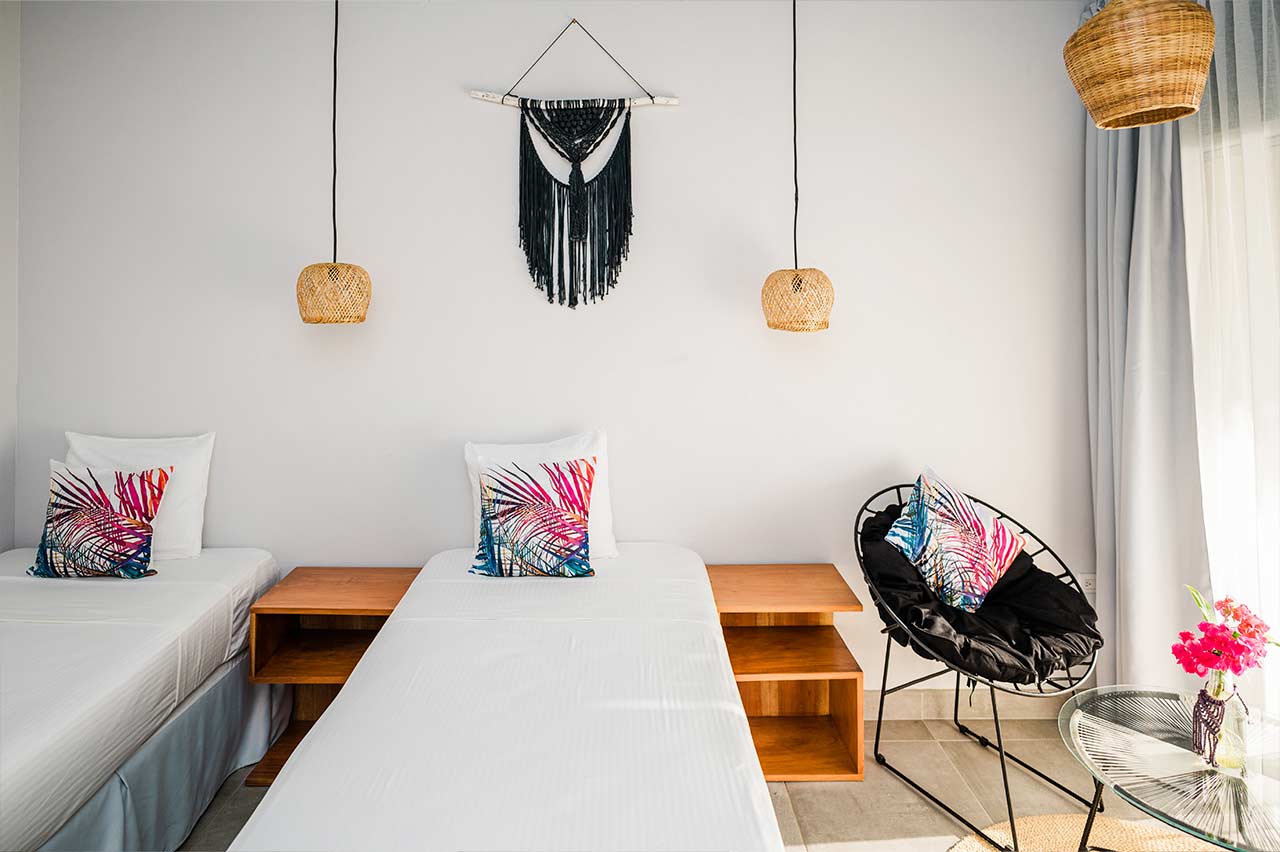 Alive Beach House hotel’s Twin room features a private deck overlooking our lush tropical garden. At 25 square meters, the room sleeps two guests.