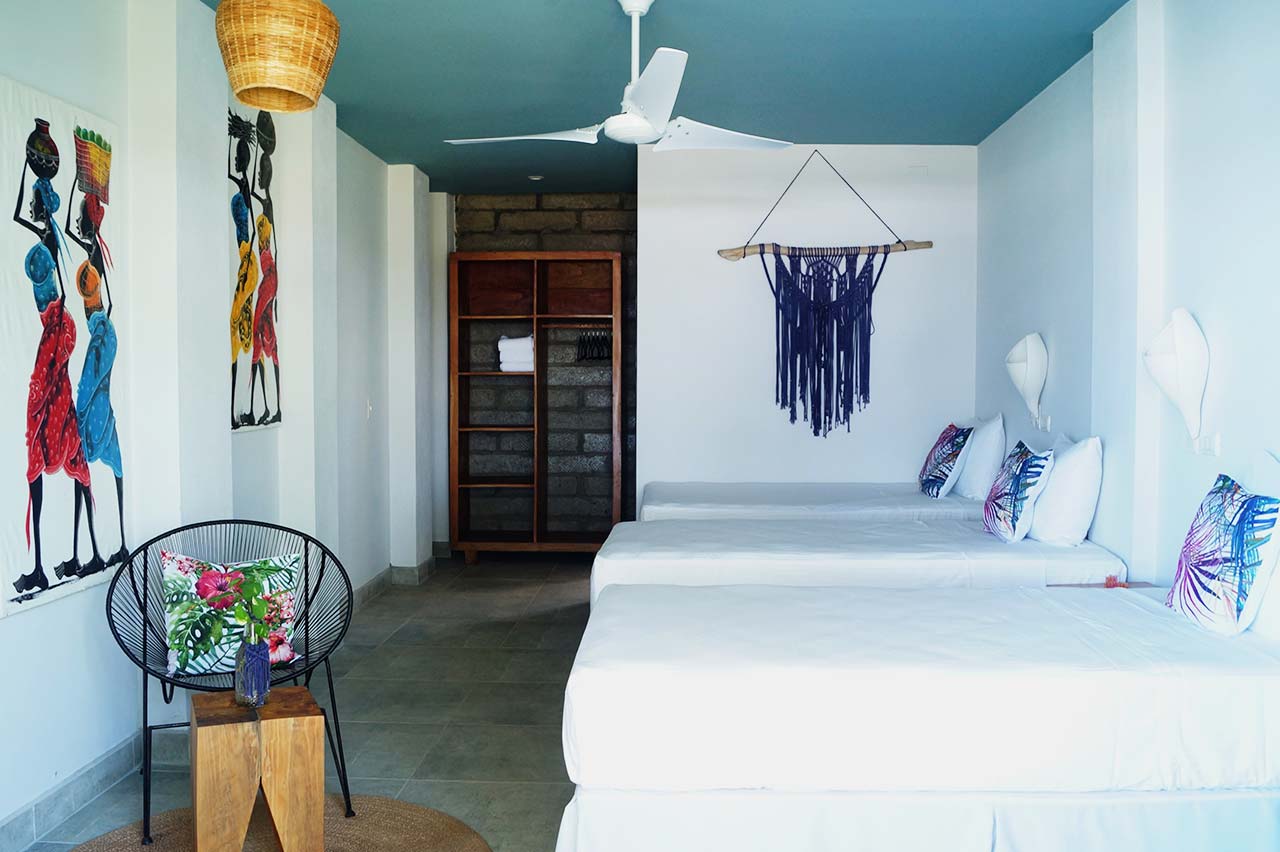 Alive Beach House hotel’s Superior Twin room features a private balcony overlooking the Pacific Ocean. At 27 square meters, the room sleeps two guests.