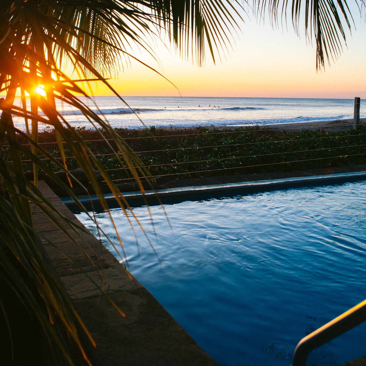 Practice and gather in our 45m² open-air yoga shala overlooking the Pacific. The entire property — pool, bar, and lounge areas — is yours to enjoy in privacy.
